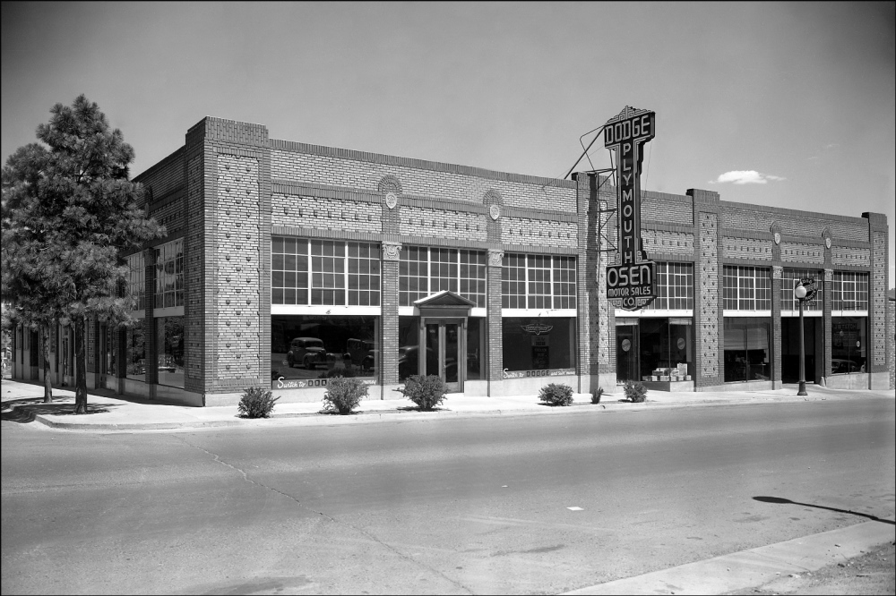 A photograph from the 1930s shows the Osen Motors building before its brick was painted over. The intricate patterns of alternating colors and textures represent the attention to detail characterizing the work of esteemed architect Frederic DeLongchamps. | Date: 1930s | Source: Jerry Fenwick and Neal CobbDownload Original File