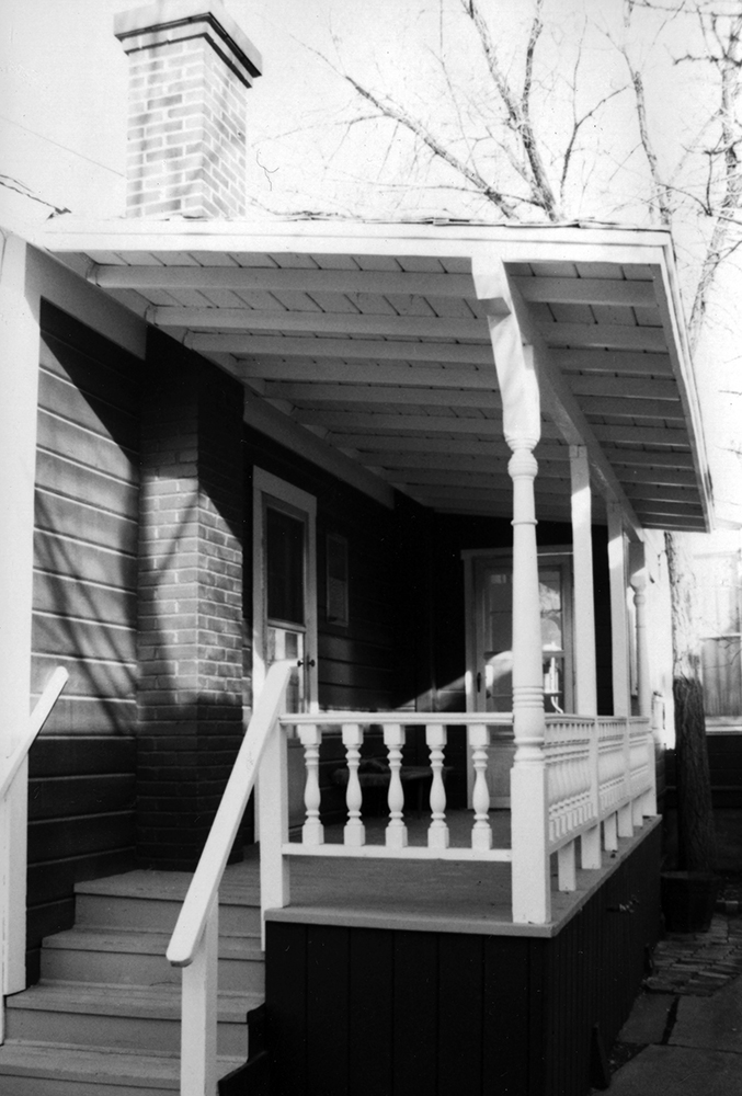The spindle feature of the Armstrong/de Longchamps house is present on the covered back porch.