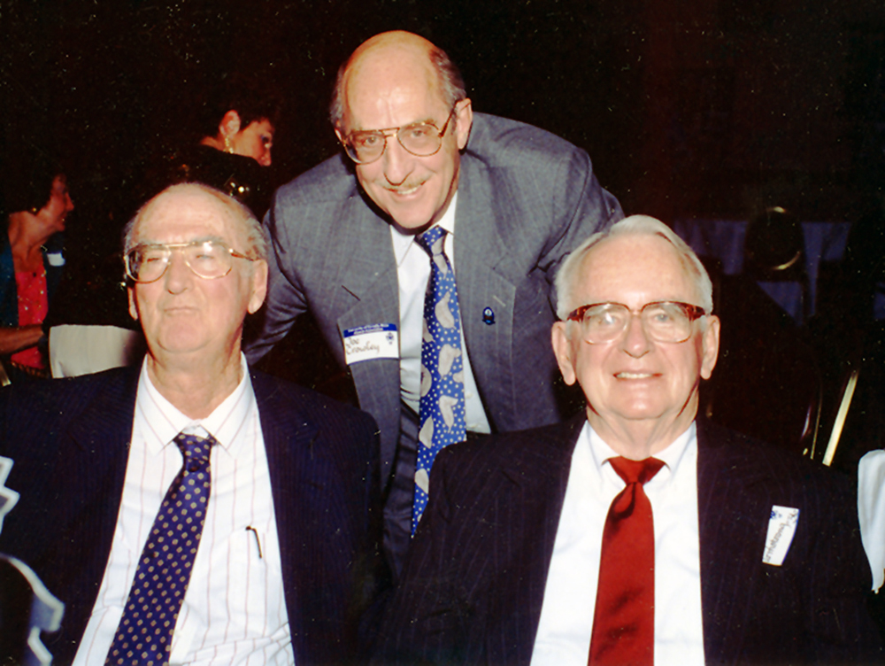Homecoming 1992 at the University of Nevada, Reno: President Joe Crowley with Ty Cobb (Professional Achievement Award) and Ray Armstrong (Alumnus of the Year). Ray spent his childhood and early adulthood at 821 N. Center St. His daughter Cathleen married Ty Cobb's son Bill. | Date: 1992 | Source: University Archives, University of Nevada, Reno LibrariesDownload Original File