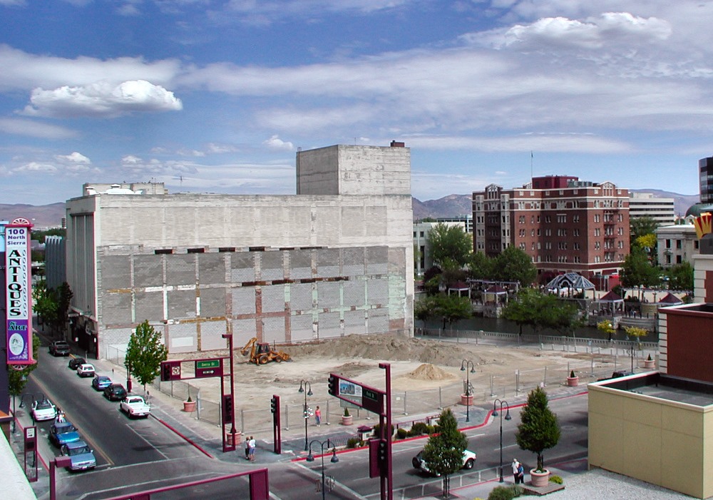 The lot that formerly housed the Elks Home lay vacant for many years prior to the completion of the Palladio Condominiums in 2006. To the rear of the empty lot is the Masonic Lodge, and to the right (on the south bank of the river) is the Riverside Hotel. | Creator: Max Chapman | Date: 2004Download Original File