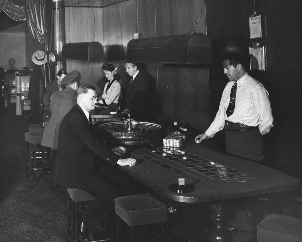 Table games in the El Cortez ID: 157 | This file appears in: El Cortez Hotel Gaming action at the El Cortez in 1944. In the center in the dark suit is longtime gaming man Bill Williams. The hotel eliminated its table games after 1948. | Date: 1944 | Source: Neal Cobb Download Original File SourceNeal CobbDate1944 "Table games in the El Cortez" appears in: El Cortez Hotel