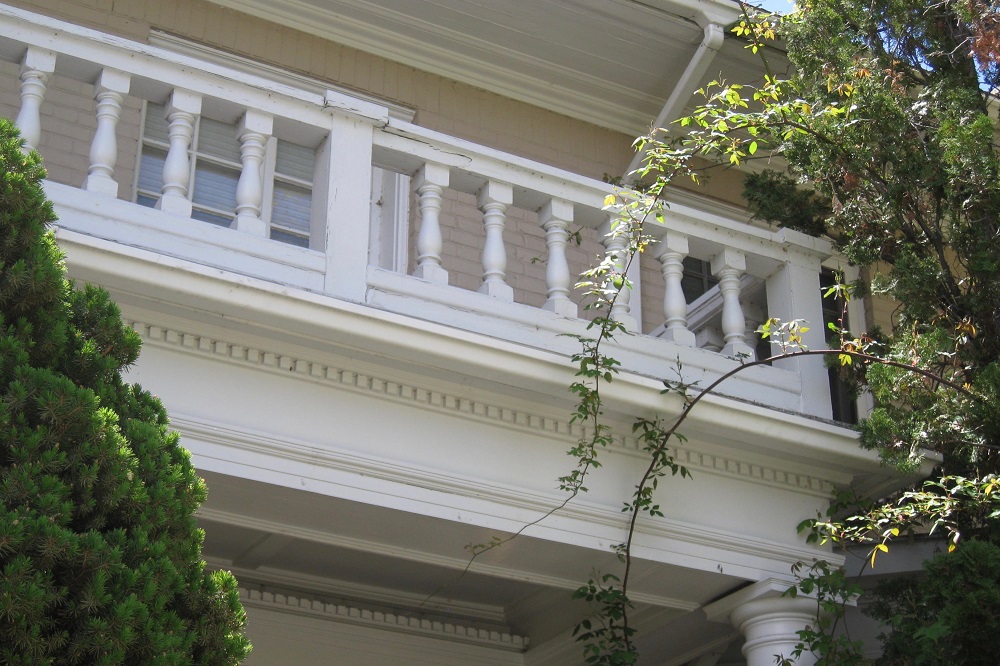 A balustrade is a hand rail across the top of balusters, which are vase-shaped posts. Dentils are small, rectangular blocks placed in a row like teeth, as part of a cornice or moulding under a roof. | Creator: Donna and Paul EricksonDownload Original File