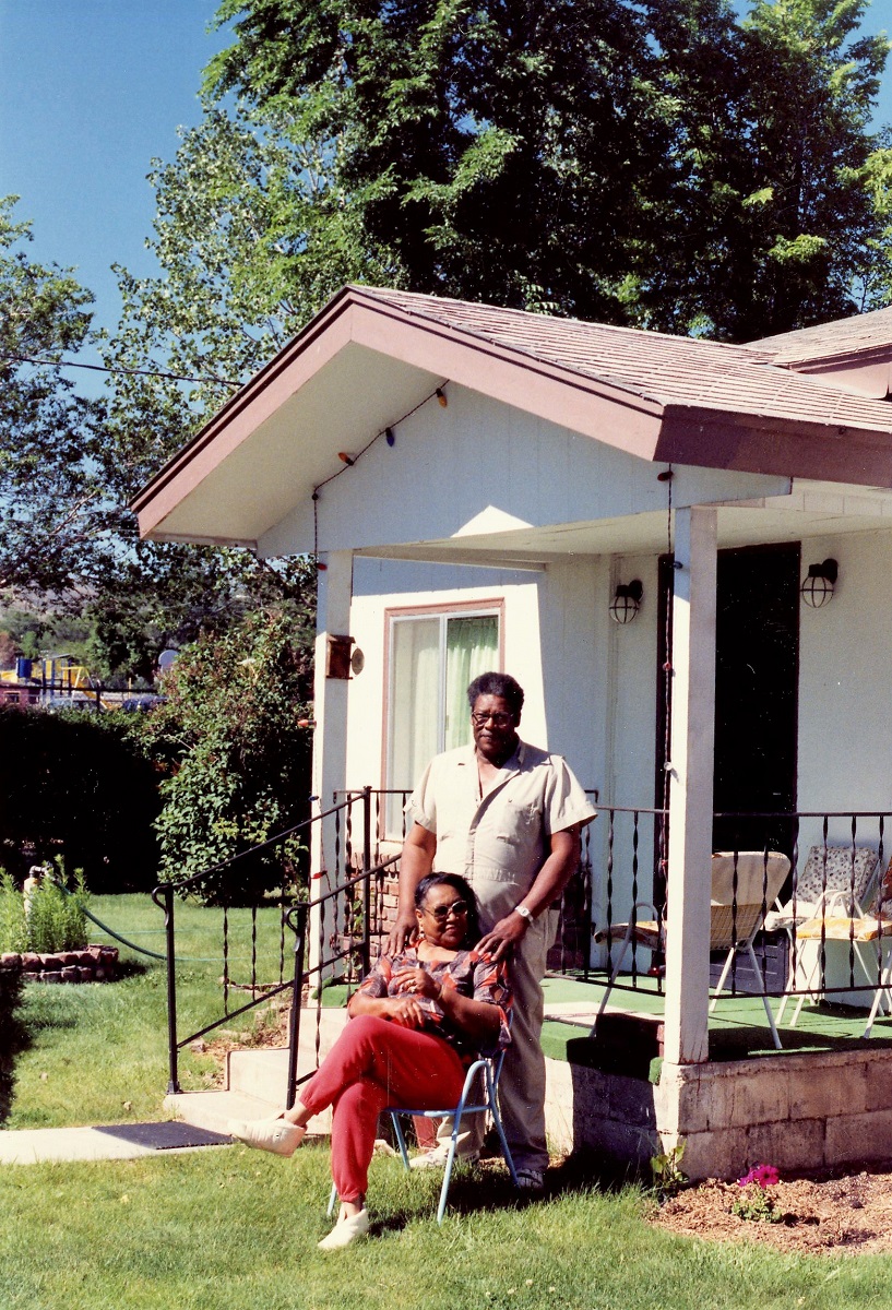 Ollie and Helen Westbrook pose in front of their home in 1991.