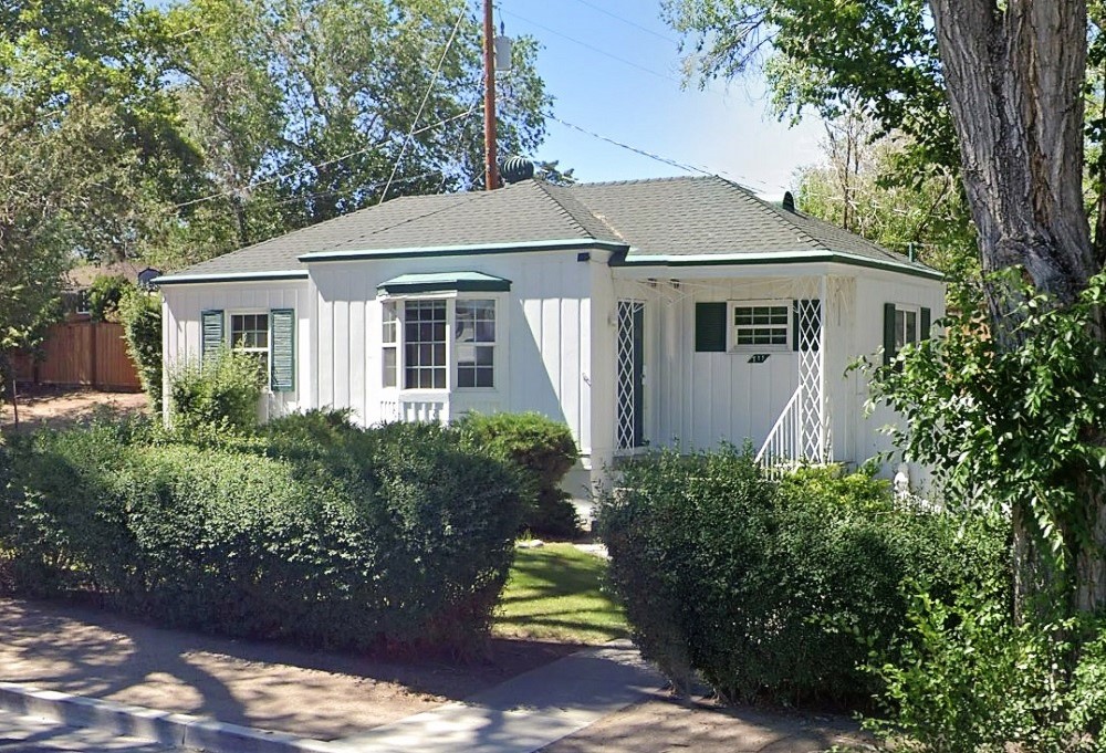 Now located at 711 Mt. Rose Street, the relocated El Reno Apartment Home retains its original "whirlybird" vent, distinctive porch filigree, original metal siding, and color scheme, although the lower portion of the floor-to-ceiling bay window has been infilled. | Source: Google MapsDownload Original File