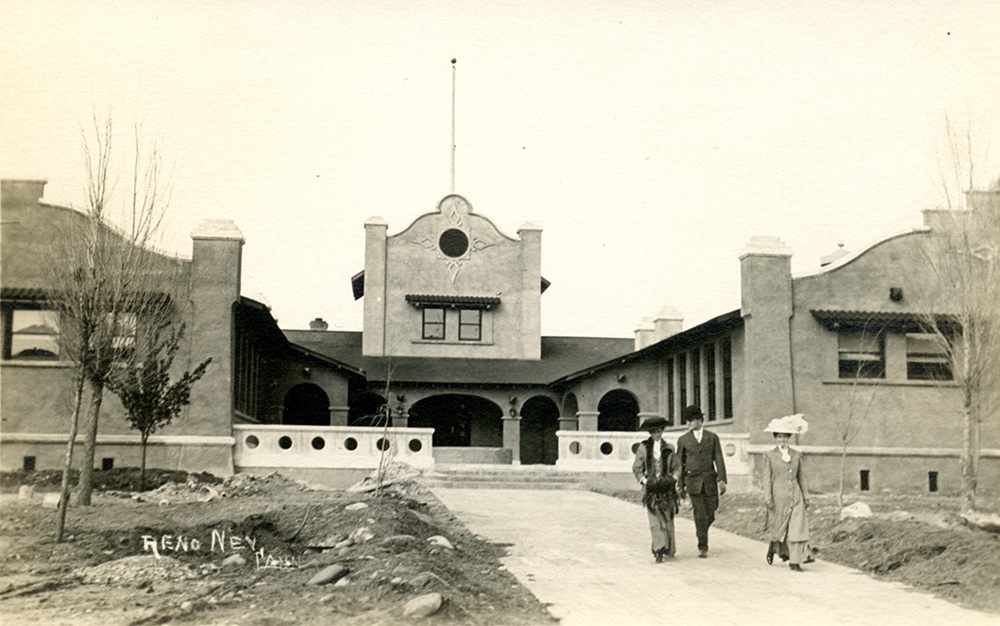 Unfinished landscaping, ca. 1915 ID: 229 | This file appears in: McKinley Park School Stylish adults stroll in front of the McKinley Park School, ca. 1915. | Date: ca. 1915 | Source: Special Collections, University of Nevada, Reno Libraries Download Original File SourceSpecial Collections, University of Nevada, Reno LibrariesDateca. 1915 "Unfinished landscaping, ca. 1915 " appears in: McKinley Park School