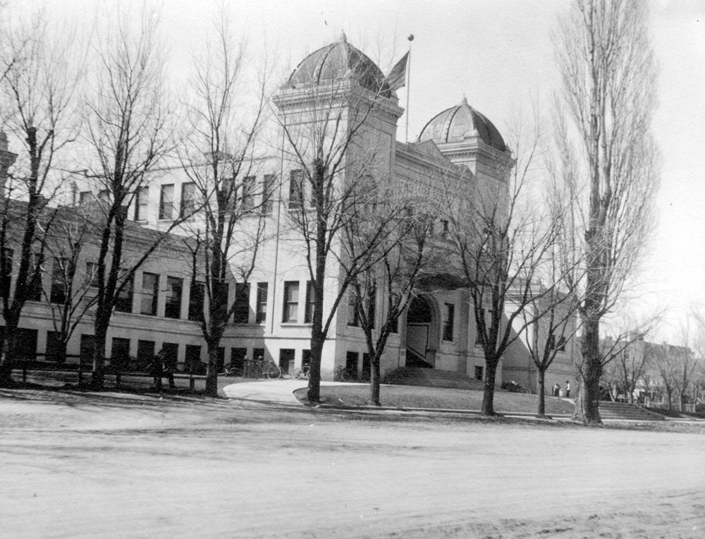 The high school built in 1912 was regarded with pride by the Reno citizens who voted to fund it. Its image was featured on several postcards. | Date: 1920s | Source: Special Collections, University of Nevada, Reno Libraries Download Original File