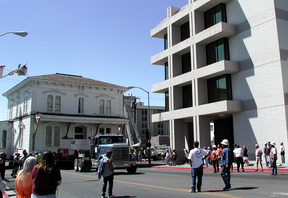 Moving again, 2004 ID: 419 | This file appears in: Lake Mansion On July 11, 2004, the Lake Mansion was on the move again from the Convention Center to the corner of Court and Arlington streets. | Date: 2004 | Source: Arts for All Nevada Download Original File SourceArts for All NevadaDate2004 "Moving again, 2004" appears in: Lake Mansion