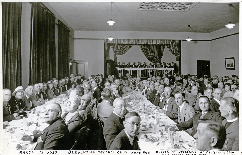 A dedication event, 1927 ID: 480 | This file appears in: Twentieth Century Club Guests at the dedication of California Building and Nevada State Building, March 12,1927. | Date: 1927 | Source: Special Collections, University of Nevada, Libraries Download Original File SourceSpecial Collections, University of Nevada, LibrariesDate1927 "A dedication event, 1927 " appears in: Twentieth Century Club