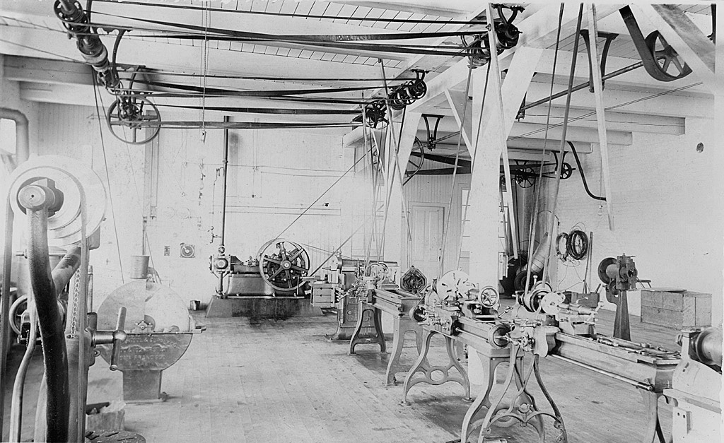 Iron-works shop interior, ca. 1908. It was also called the mechanical workshop.