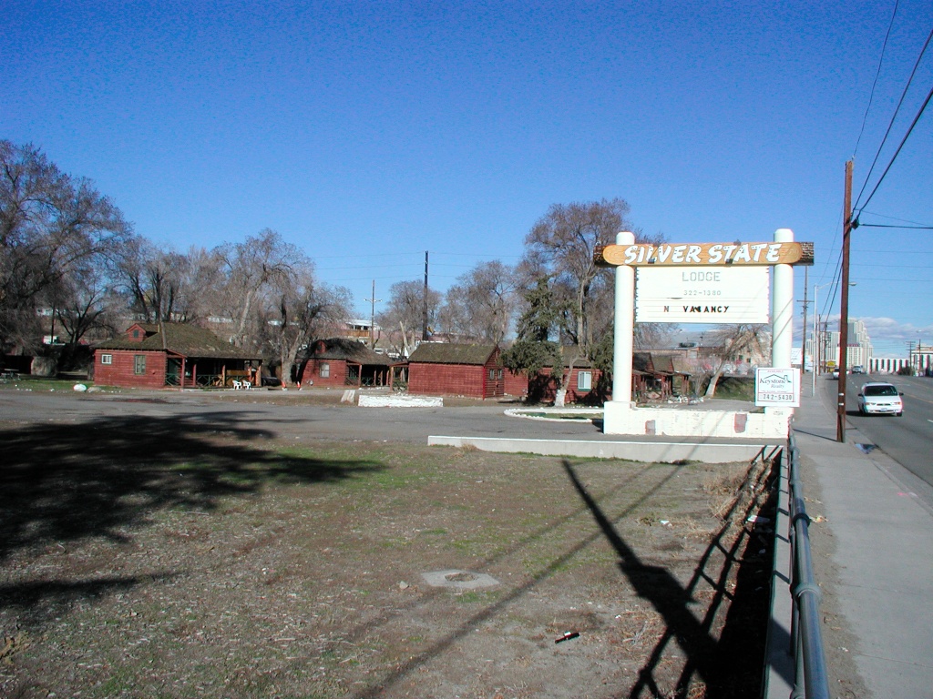 The final years ID: 61 | This file appears in: Silver State Lodge (site) In 2005, the entire complex was demolished. The only thing left standing was the sign seen on the right in this 2003 photograph. | Creator: Max Chapman | Date: 2003 Download Original File CreatorMax ChapmanDate2003 "The final years" appears in: Silver State Lodge (site)