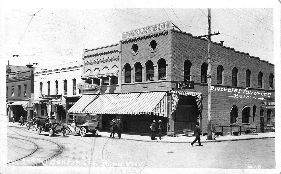"Divorcies favorite resort" ID: 64 | This file appears in: Thomas' Café (site) Thomas' Cafe appeared in magazines and newspapers and on postcards like this one, dated 1912, as a divorcee's favorite. | Date: 1912 | Source: Dick Dreiling Download Original File SourceDick DreilingDate1912 ""Divorcies favorite resort"" appears in: Thomas' Café (site)