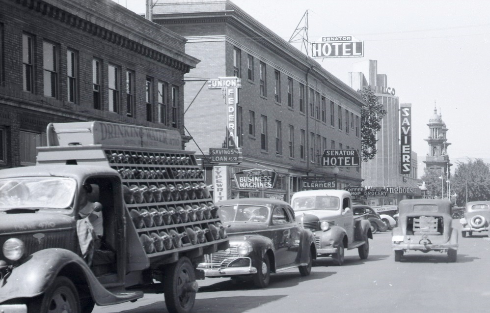 The Saturno building, also known as the Senator Hotel, is one of the area's oldest commercial buildings. At the time of its construction in 1907, Reno's business district was just beginning to expand westward from busy Sierra Street. The west side of this block was filled with wood frame single-family houses, while just to the east stood an Episcopal church later replaced by the Cladianos Building.