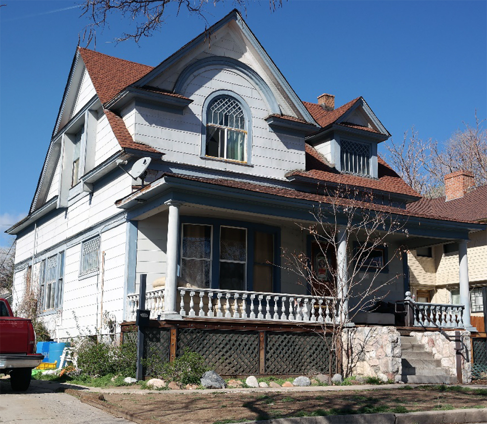 The house itself dated back to at least 1910, and was a rare example of the Free Classic style of Queen Anne architecture in Reno. The foundation was constructed of local stone, and the porch was supported by Tuscan columns. The wood front door was likely original, featuring an upper window and lower panel carved with a Classically-derived wreath relief.