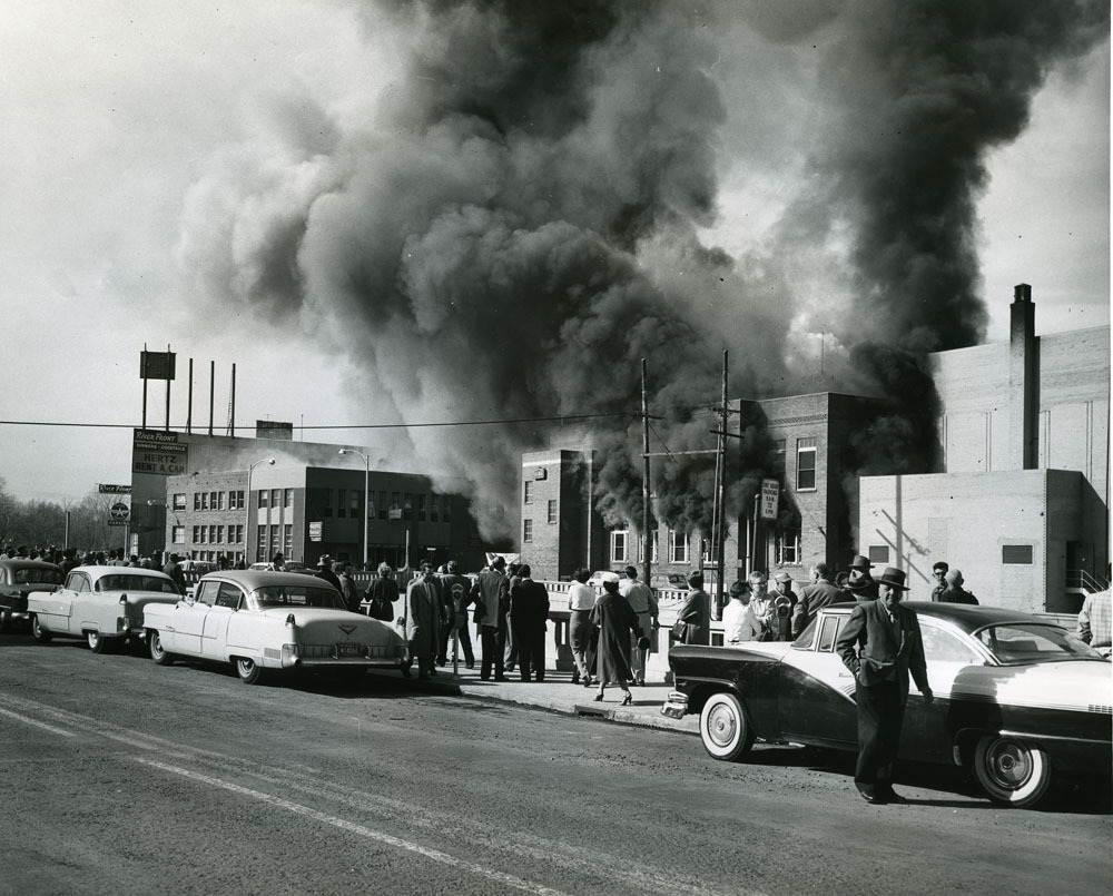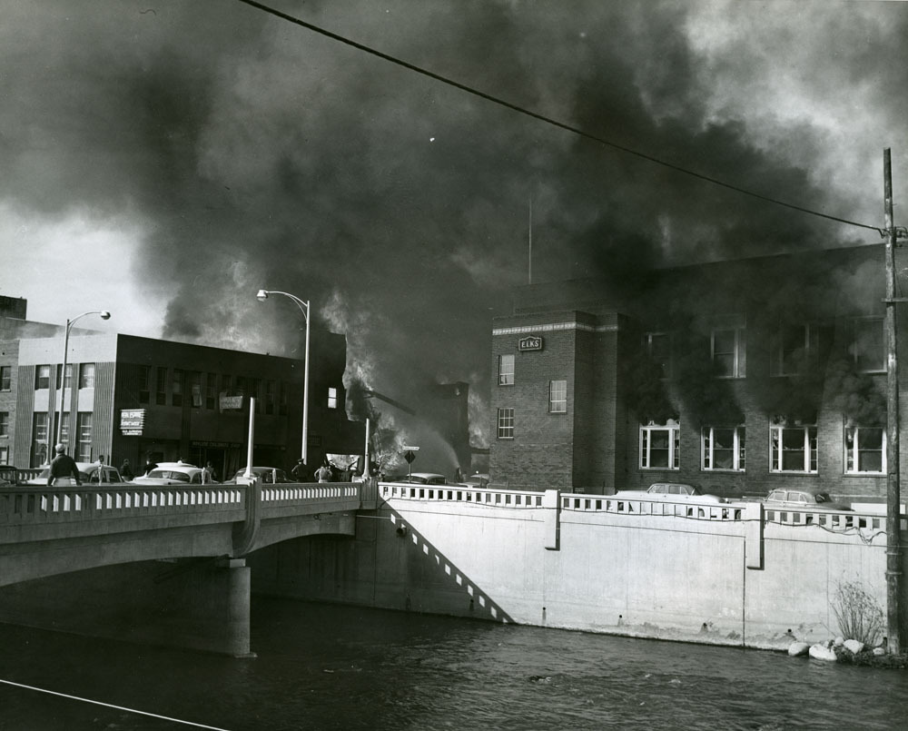 The Reno Lodge was very active during its first 60 years, and the Reno Elks Home was a social center of the community. The Elks performed many acts of charity in and around Reno. Between 1904 and 1957, the Reno Elks Home was flooded twice by the Truckee River and survived a small fire. On February 5, 1957, however, the luck of the building ran out when the Reno Elks Home was destroyed by a disastrous explosion on Sierra Street that set the building and many neighboring structures on fire. J.C. (Cliff) Kumle, Secretary and Manager of the Reno Elks at the time, was credited with averting further tragedy by promptly evacuating 74 members from the lunch and card rooms. As a result, only minor injuries were reported among the Elks, although the building had to be razed soon after.