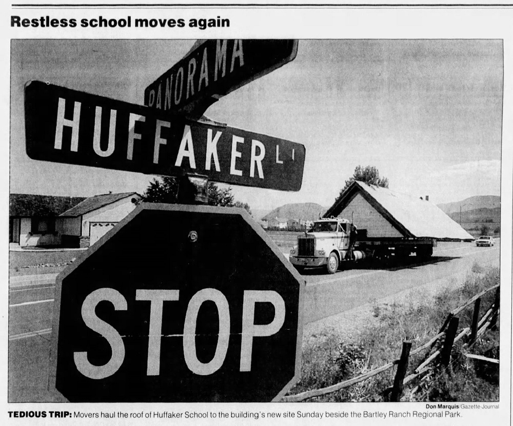 The community of Huffaker’s has long since been swallowed up by the city of Reno, but it lives on in the names of its contemporary and historic schools, Huffaker Park, Huffaker Lane, and the surrounding Huffaker Hills.
