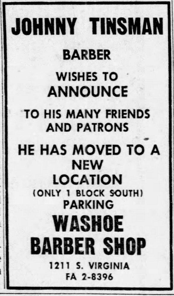 The small addition on the building's north side was constructed around 1960 to house Johnny Tinsman’s Washoe Barber Shop. Red Kittell opened a State Farm Insurance office in the small space in 1973 after removing the mirrors and sinks of the former barber shop.