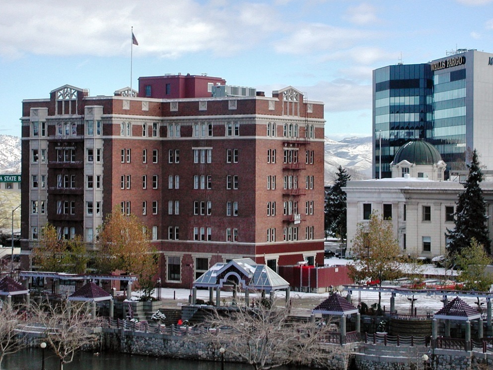 The inn burned down on December 4, 1868, just a few months after the Central Pacific Railroad began selling lots in the new Reno town site, just north of the river. Lake quickly constructed a new wood-frame hotel that became one of Reno’s finest. In 1888, four years after Myron Lake’s death, his son-in-law took over the Lake House, renaming it the Riverside Hotel.