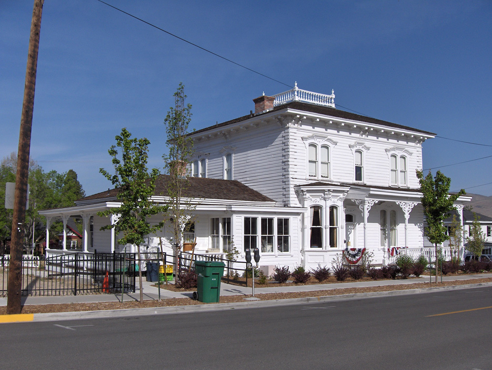 As you look at this impressive Italianate-style home, imagine the complication of moving its bulk--not once, but two separate times. The Lake Mansion, now sitting proudly at the corner of Court Street and Arlington Avenue, was built in 1877 by Washington J. Marsh and purchased by Myron Lake in 1879 for $5,000. Architect John S. Sturgeon designed the building. Lake is often considered the founder of Reno because his toll bridge across the Truckee prompted the early settlement to be called "Lake's Crossing."