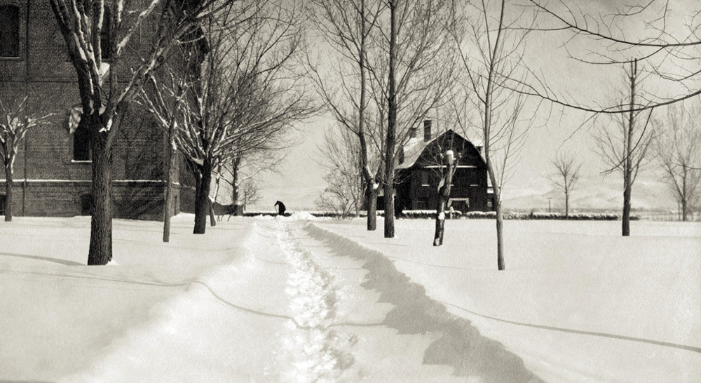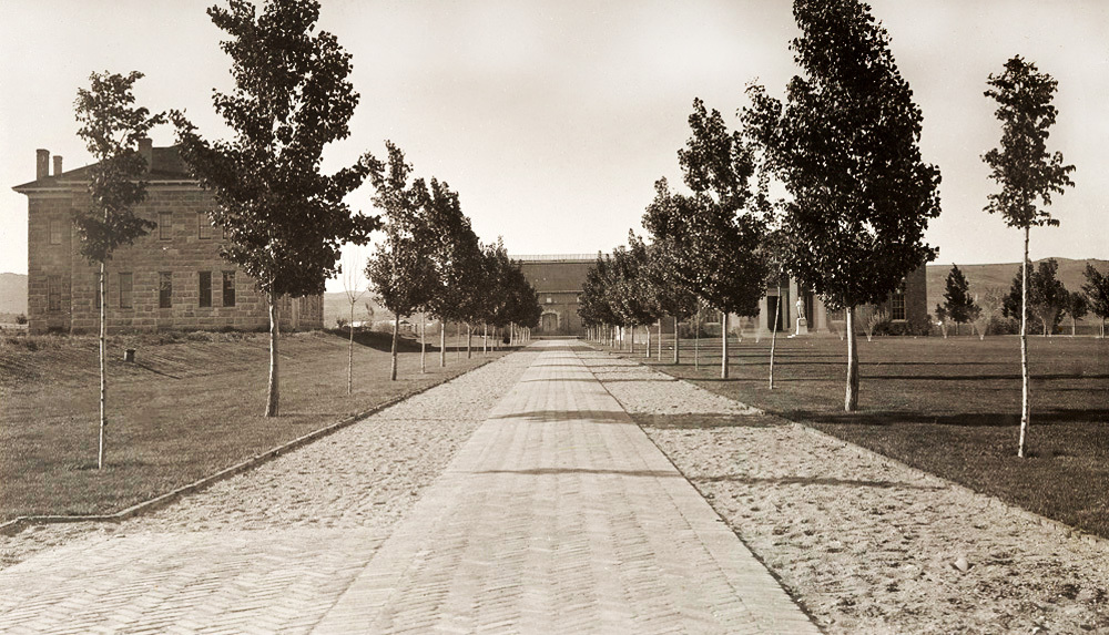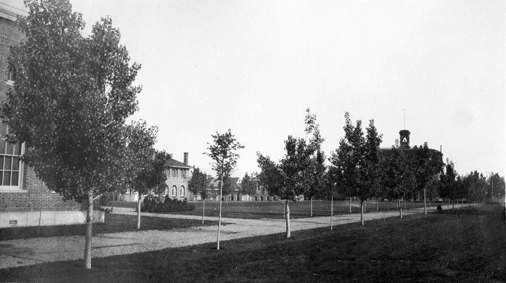 Clarence Mackay donated the funds and hired the same architectural firm that had designed and overseen construction of the Mines building—the prominent New York firm of McKim, Mead, and White—to design appropriate landscaping for the quad, including the giant elm trees that still line its edges. A master plan submitted that same year specified that any new buildings at the university were to be constructed facing the quadrangle, rather than toward the town of Reno.