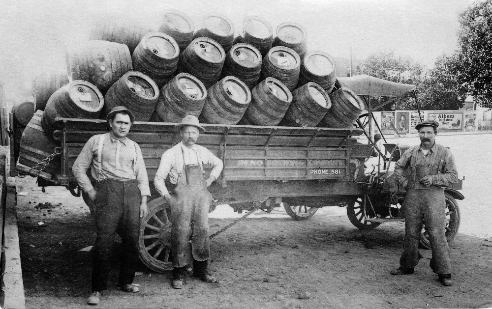 The new business was founded by a trio of men in their thirties. Master brewer Jacob Hook had immigrated to the United States from Germany in 1886, while John Maurer and Peter Dohr were second-generation Germans originally from Wisconsin who moved to Reno from Montana. Their raw materials–corn, malt, and hops–were brought into town by rail, and an electricity-powered ice plant on the premises chilled the barrels in a vast refrigerator room.