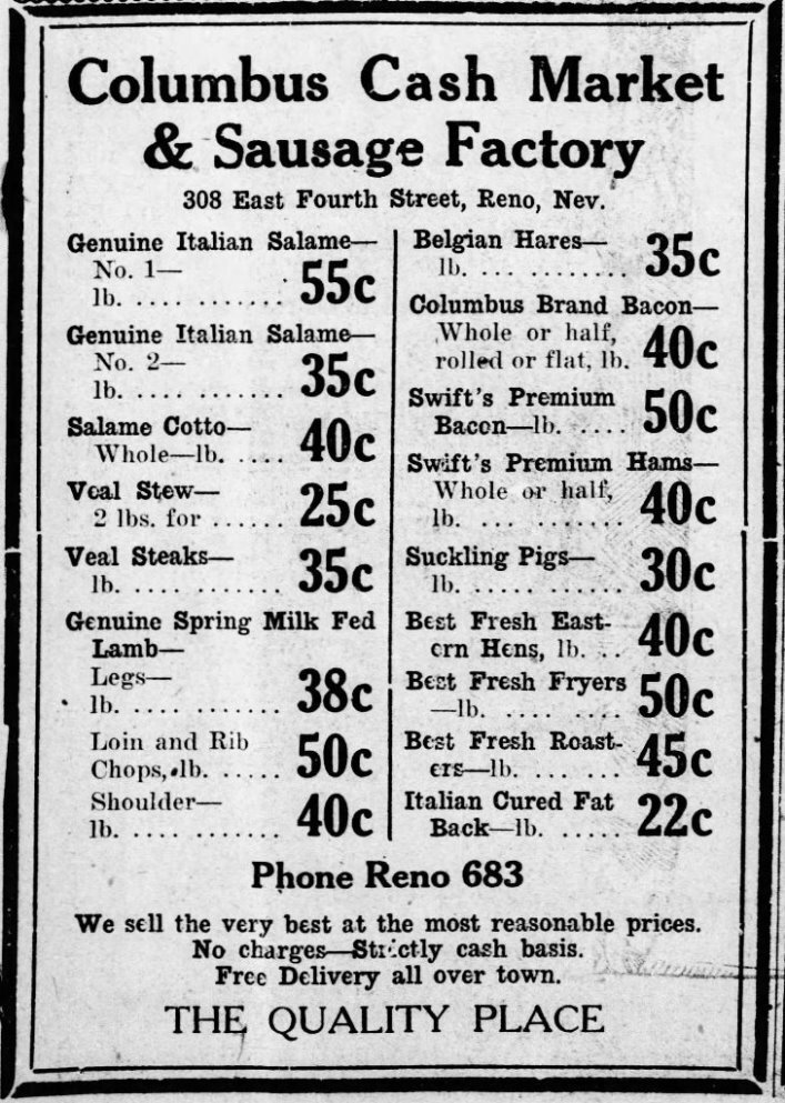 John Corsiglia had this three-story brick building constructed on his property at Fourth and Peavine (later Evans Avenue) in 1907 for $20,000. A native of Italy, Corsiglia had immigrated to the United States in 1870, reportedly working for a time as a miner and stagecoach driver in Virginia City.