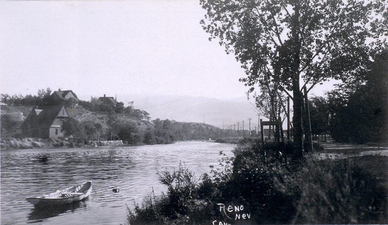 Still life with boat ID: 1746 | This file appears in: Riverside Drive: A seven-block stretch of serenity since its creation in the 1880s A boat floats in the Truckee River in a view looking west along Riverside Drive, ca. 1900. | Date: ca. 1900 | Source: Jerry Fenwick Download Original File SourceJerry FenwickDateca. 1900 "Still life with boat" appears in: Riverside Drive: A seven-block stretch of serenity since its creation in the 1880s
