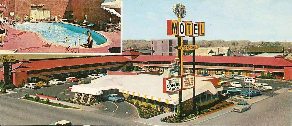 El Rancho Motel No. 2, ca. 1961 ID: 400 | This file appears in: El Rancho Motel No. 2: The 1954 motel marked the expansion of the Cladianos family's hospitality business. After 1961, the El Rancho complex included a motel with pool, a cocktail lounge, and a Denny's Coffee Shop. | Date: ca. 1961 | Source: Steve Ellison Download Original File SourceSteve EllisonDateca. 1961 "El Rancho Motel No. 2, ca. 1961 " appears in: El Rancho Motel No. 2: The 1954 motel marked the expansion of the Cladianos family's hospitality business.